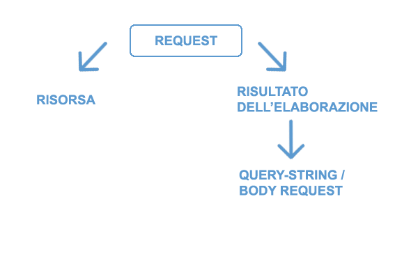 Un interrogazione verso il server può richiedere qualcosa come: una risorsa in generale (file statici o dati JSON) o il risultato di una elaborazione.